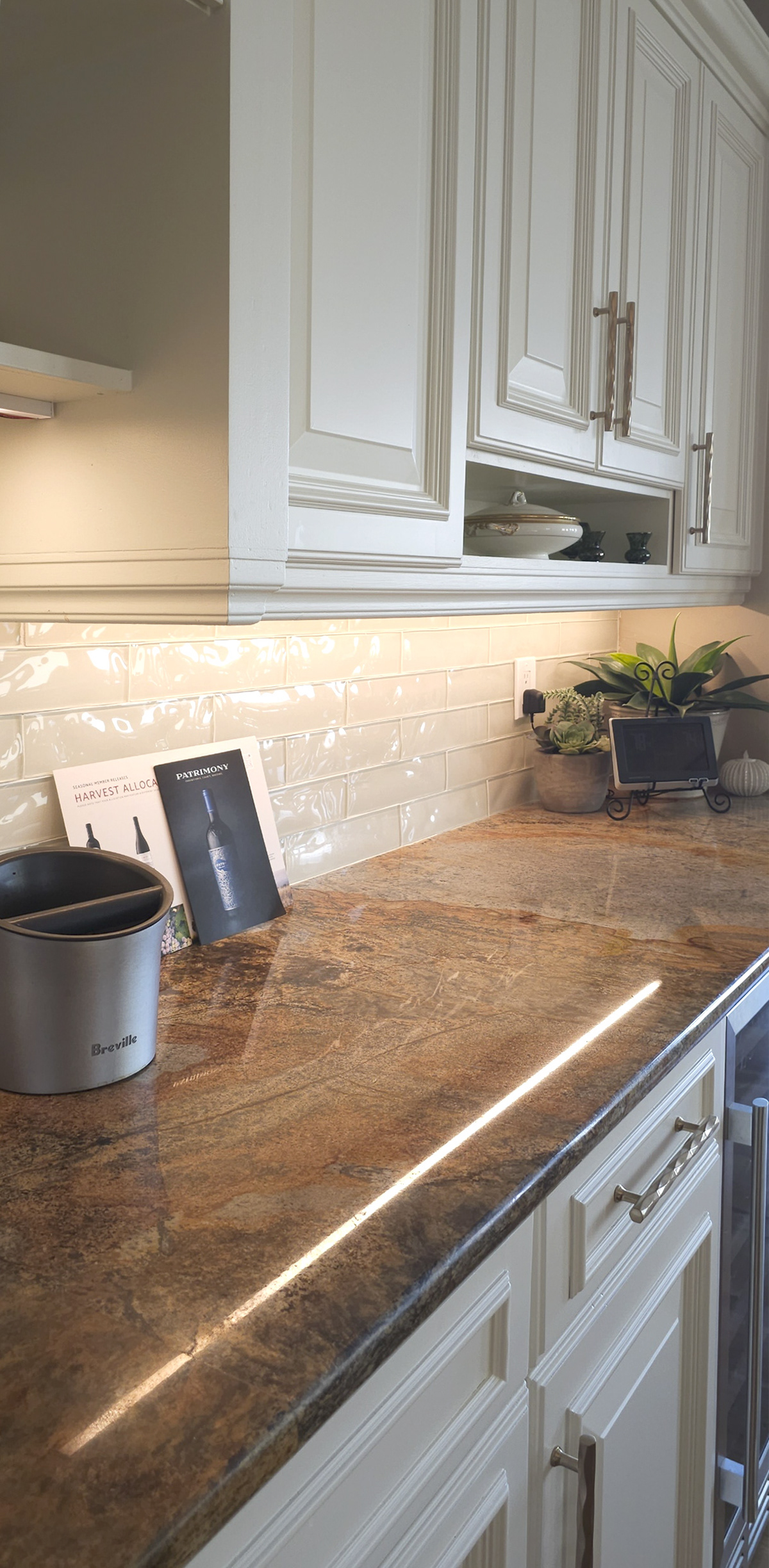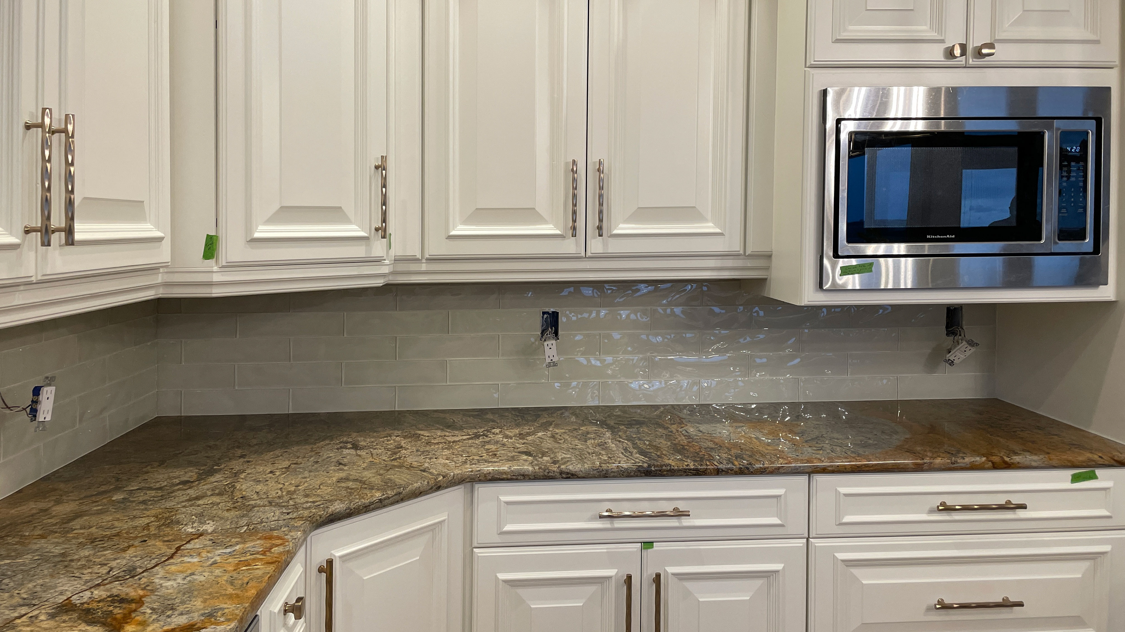 Waved glass tile, kitchen project, CO, Castle Pines